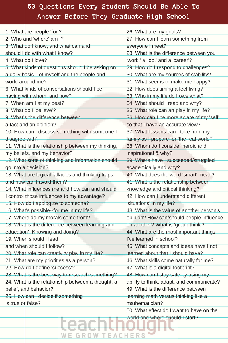 50 Questions Every Student Should Be Able To Answer Before They Graduate High School