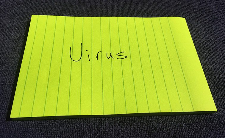 The students wouldn’t see the 4in x 6in Post-it® Super Sticky Note with the concept, “Virus”, written on it, but rather only the smaller 3in x 3in Post-it® Super Sticky Notes around it.
