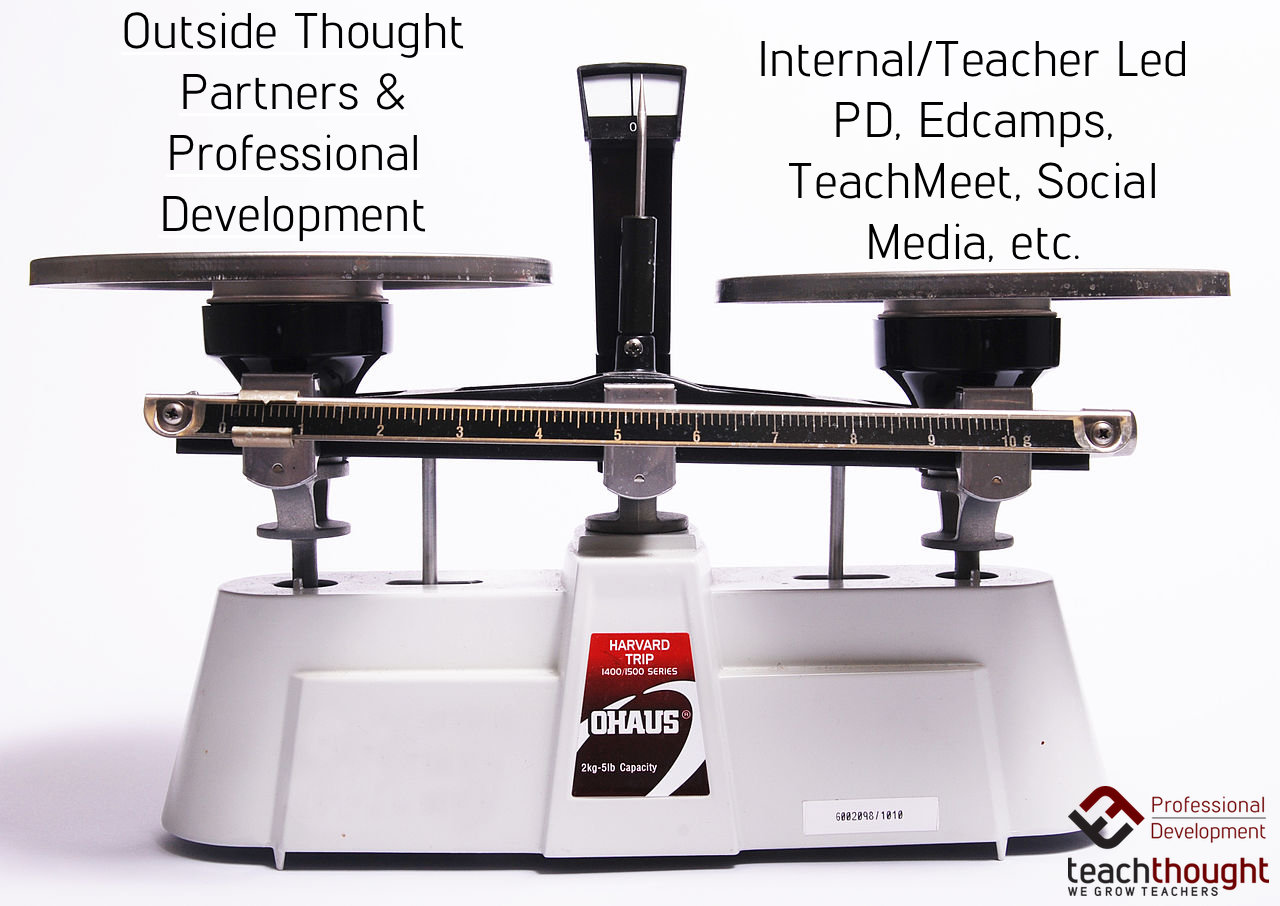 Internally here at TeachThought, we fight against the confirmation bias that really kills thinking and similarly, schools have to fight against the dynamic of teachers leading PD that just reinforces what they think their leadership wants from them. As a teacher, I remember principals coming into after-school staff meetings and proclaiming, “The answers are in this room” but what they really meant was “I’m going to have you talk until I hear what I want you to say.” To be clear, too much outside voice is also imbalanced and if your professional development partner is not heavily including those internal voices and questions of your teachers and other stakeholders then you may want to reconsider the value.
