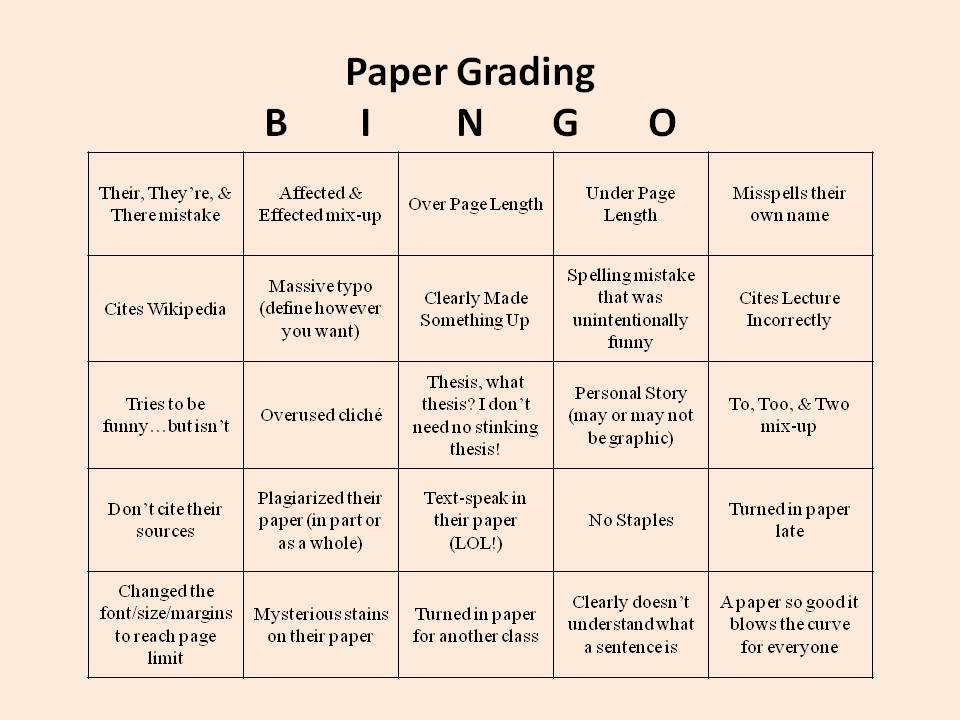 So then, a new, faster, simpler way to grade papers makes sense–something like paper grading bingo from thenewforty.areavoices.com.