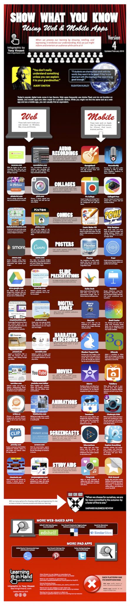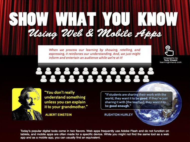 The tools to publish student work are separated into 11 varied categories that run the spectrum of digital publishing, a list that’s nearly as useful as the graphic itself. You can find the list, graphic, and tools below courtesy of Tony Vincent from learninginhand.com.