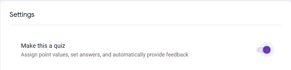 - Under ‘Make this a quiz,’ toggle the icon to ‘On’