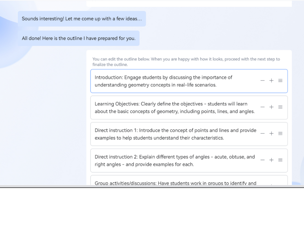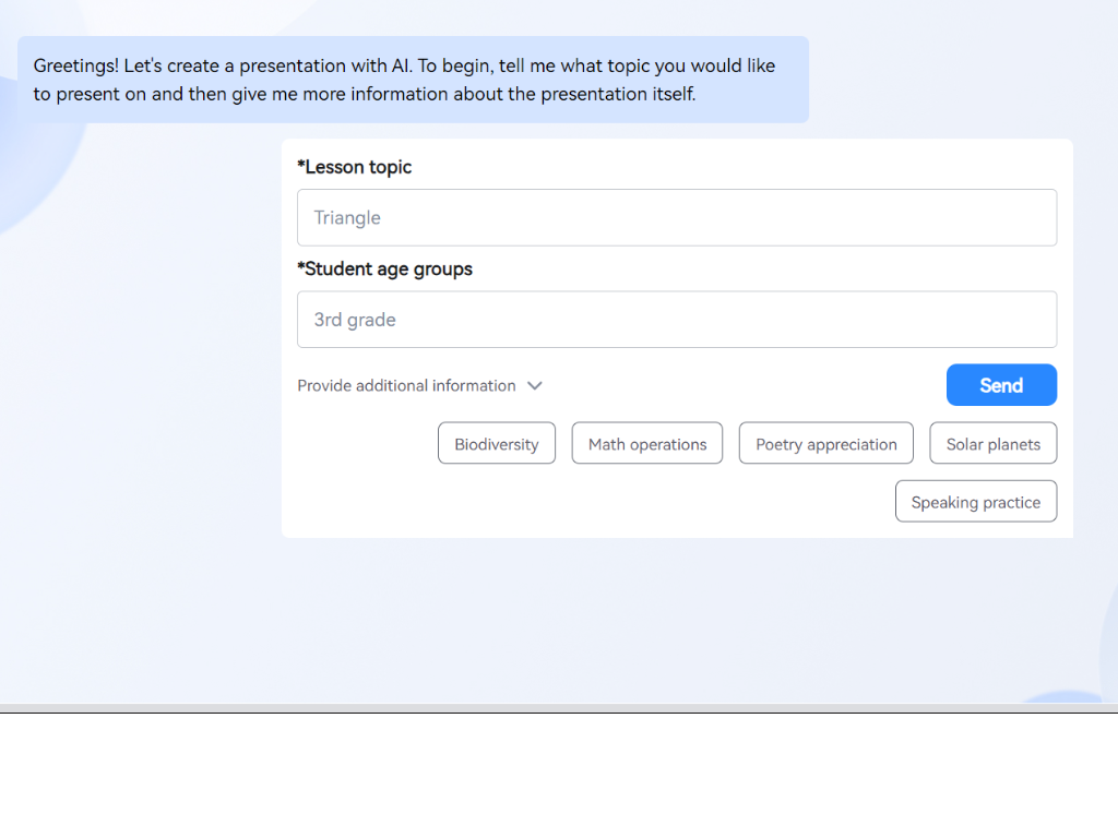 Use our advanced AI-generated content creator to help you produce an impressive range of high-quality content for students. Whether you’re making a short presentation about the seasons for 1st-graders or goal-setting with high schoolers, the possibilities are diverse.