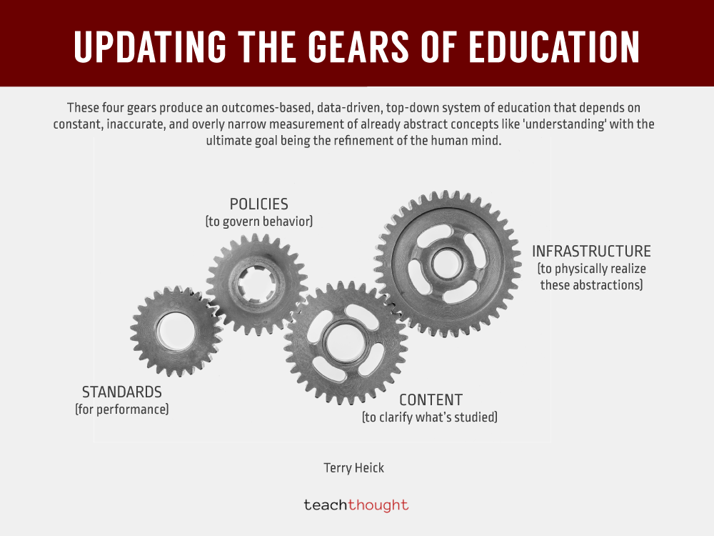 IX. These four gears produce an outcomes-based, data-driven, top-down system of education that depends on constant, inaccurate, and overly narrow measurement of already abstract concepts like ‘understanding’ with the ultimate goal being the refinement of the human mind.