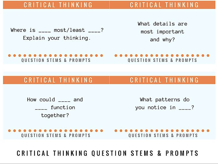 The purpose of these stems is to help students practice this slippery ‘skill.’ By having dozens of questions written generally enough to be widely applicable, but with an inherent rigor that challenges students to think, the ability to practice thinking critically is always available.