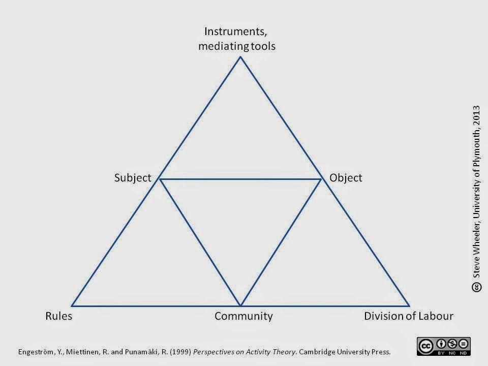 In this post, we explore the work of Yrjö Engeström on Activity Theory. This is a simplified interpretation of the theory, so if you wish to learn more, please refer to the original work of the theorist. Activity Theory (AT) originated in Soviet Russia from the work of Vygotsky and Leont’ev on Cultural Historical psychology and Rubenstein and others on related neuropsychological perspectives.